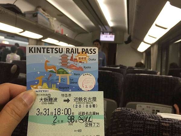 今晚離開大阪,第三天使用近鐵電車周遊券 KINTETSU RAIL PASS (一般版3800日圓),這趟難波-名古屋票價就要4260日圓.坐一趟就夠本了,呵呵.