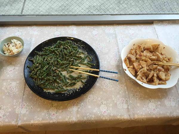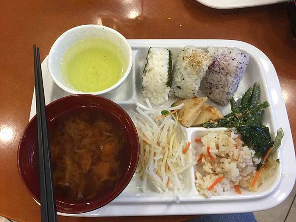 早餐以傳統的各式壽司.小菜和米壽湯為主,日本的米很棒,所以壽司很好吃.