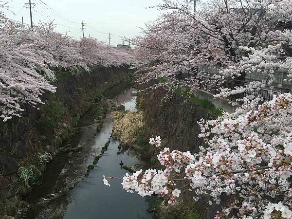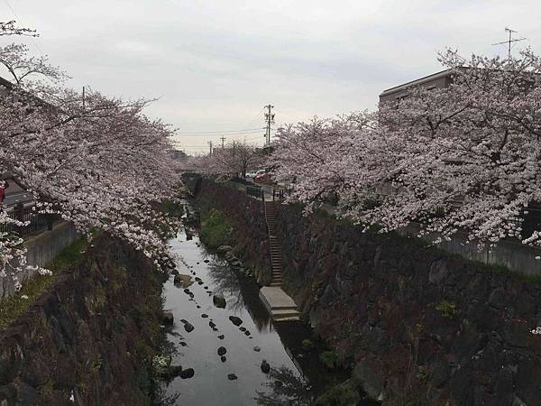 山崎川的兩旁邊都是滿滿的櫻花樹,感覺跟奈良的佐保川非常的相似。