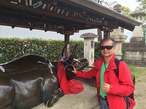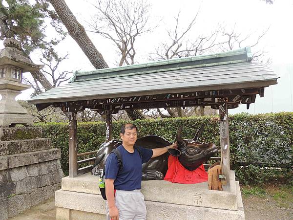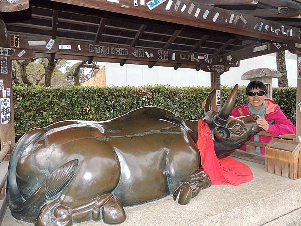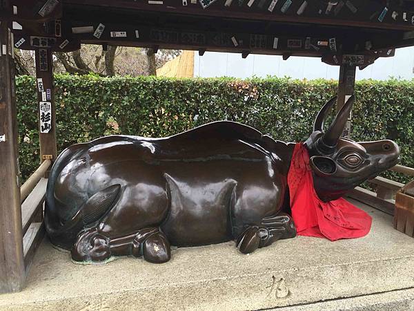 境內有許多牛雕像,據說是當年運載菅公遺體的牛車行至途中,牛隻突然蹲下來不走了,眾人只好將他埋葬在該地。後來改建成社殿,就是太宰府天滿宮。神牛雕像都是臥著,僅拜殿柱上一牛為站立.