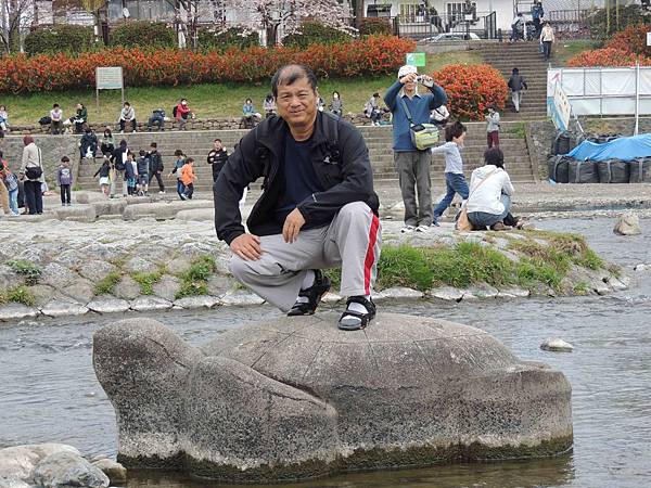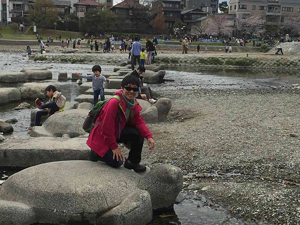 烏龜(飛び石)基本上就是踏腳石.他可不是為了讓人玩樂而放的.是為了調整鴨川水流所做的最後一道水利工程,只是在設計時順便賦予美觀與遊憩的功能.