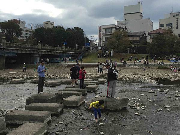 鴨川可以跳河的地方不只一個,而且每個地方的石頭都不太一樣.