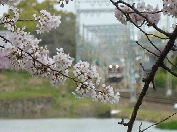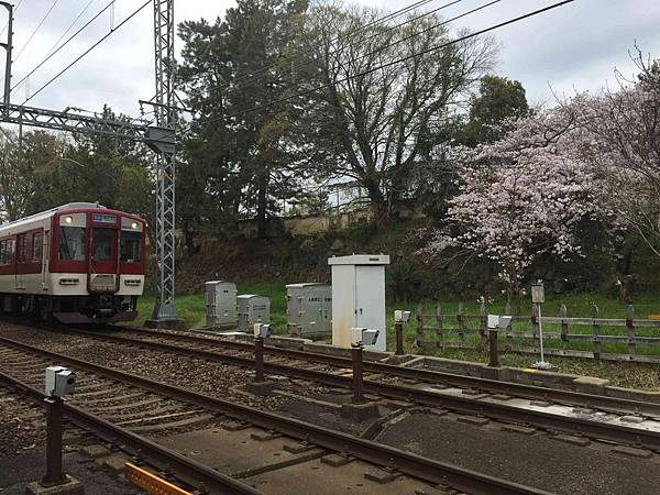 櫻花下的近鐵火車多迷人啊.,難怪火車控們會不持辛勞的架著腳架苦候.呵呵.