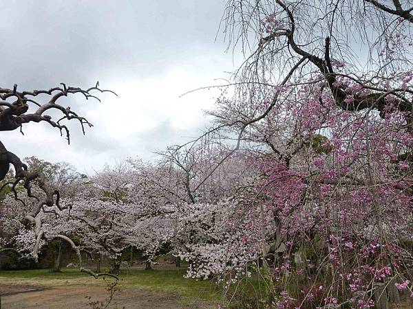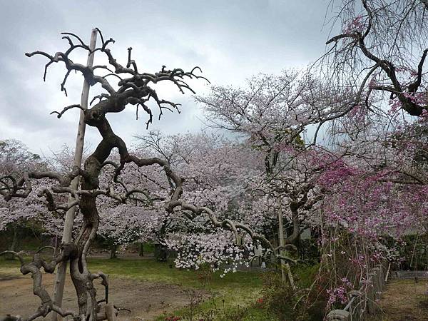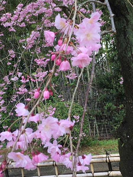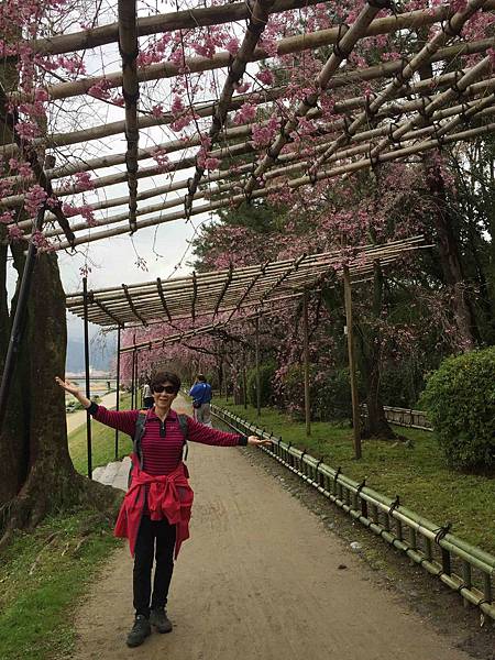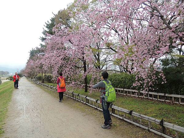 當初規畫行程時,網上爬文發現竟然有粉紅色的櫻花,因此特別把半木の道排在行程內.