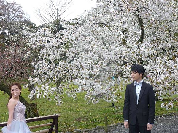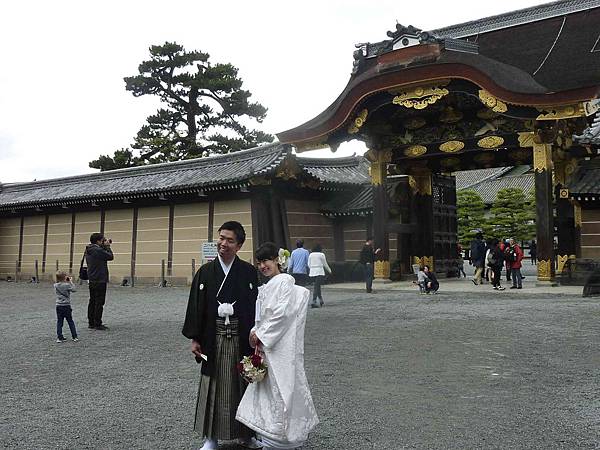 日本新人喜歡穿著傳統和服到二條城拍婚紗照.
