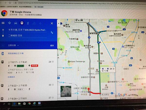 北山站烏丸線 新田邊 上車 - 烏丸御池站下車轉東西線 二條城前站下車,走路約150公尺.(京都市營地鐵一日卷已搭第三趟回本了).