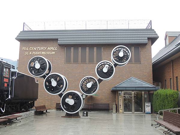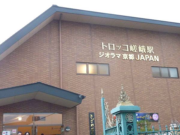 嵯峨嵐山車站站前可以見到隸屬於嵯峨野觀光鐵道的小火車嵯峨車站與附設的展覽館「19世紀館」.