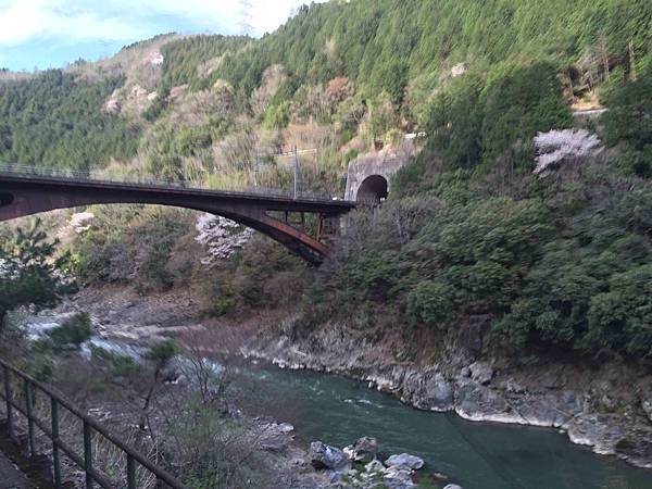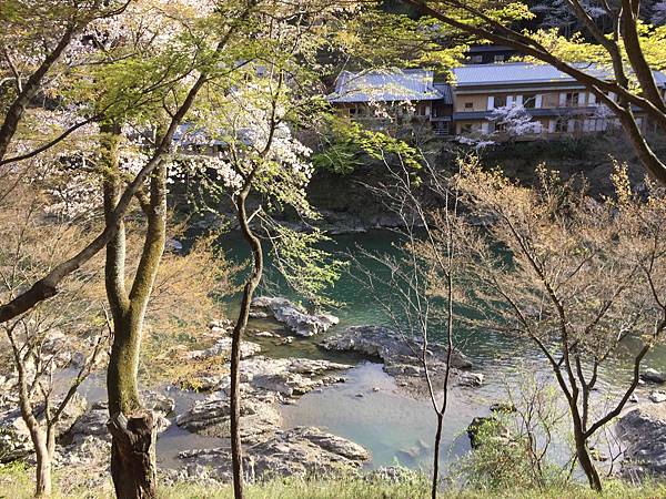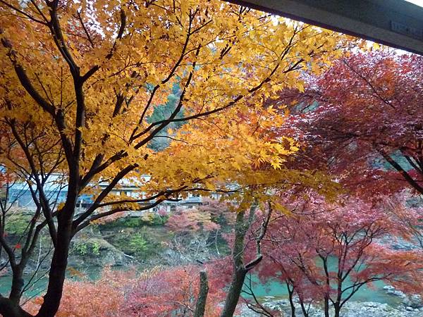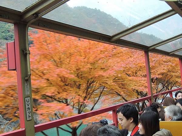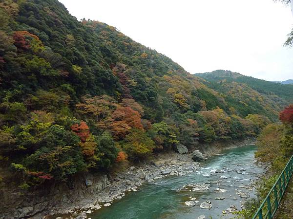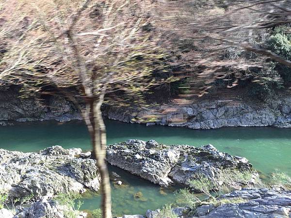 嵯峨野觀光小火車沿保津川行駛,峽谷下方保津川激流湍急,景色美極了。