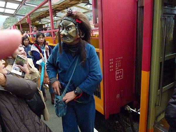 小火車上會有打扮成妖怪的人出來逗弄遊客.