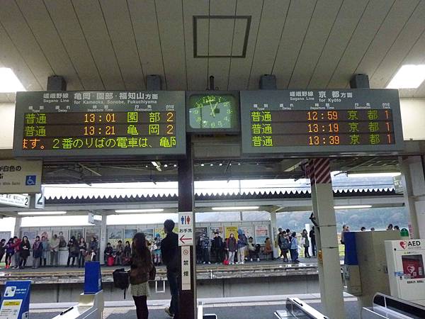大部分的遊客都是在京都搭乘JR嵯峨野線(龜岡行),然後在馬堀站下車再走到龜岡站轉搭嵯峨野觀光列車到嵐山.
