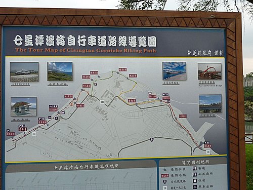 花蓮兩潭自行車道騎乘路線為七星潭至鯉魚潭由,總長35.3公里。從「德燕濱海植物園區」開始為自行車步道起端,進入七星潭風景區,再往南可透過木梯上至四八高地、環保公園之後進入花蓮港跟南濱公園區,這段路程緊臨花蓮港,常和貨輪並肩前進,宛如鐵馬巨輪激烈競賽,非常有趣。沿著與濱海鐵路平行的木棧道前進,會經過復原的「米崙招呼站」和「江口良三郎紀念公園」跨越曙光橋後即可騎往北濱公園,這段沿海道路一路平坦順暢。之後經由光華創意文化園區經由舊鐵道區、木瓜西橋即可前往鯉魚潭風景區。 資料來源:台灣觀光學院 花蓮兩潭自行車道(七星潭-鯉魚潭),沿途可欣賞太平洋的浩瀚, 美侖溪的秀婉,或在清晨看曙光日出,或在傍晚欣賞漁船返航, 享受花蓮另一種海岸風情。