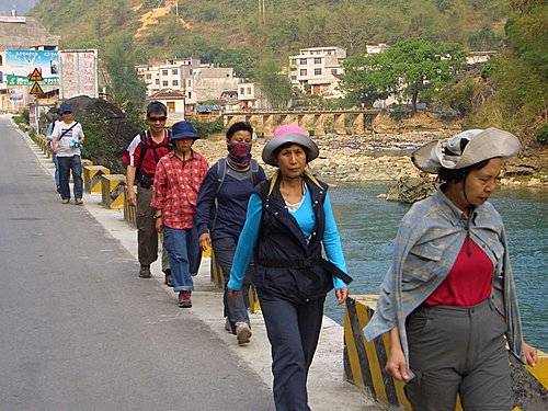 交車少大家決定用走的,沿著公路我們這群背包客開